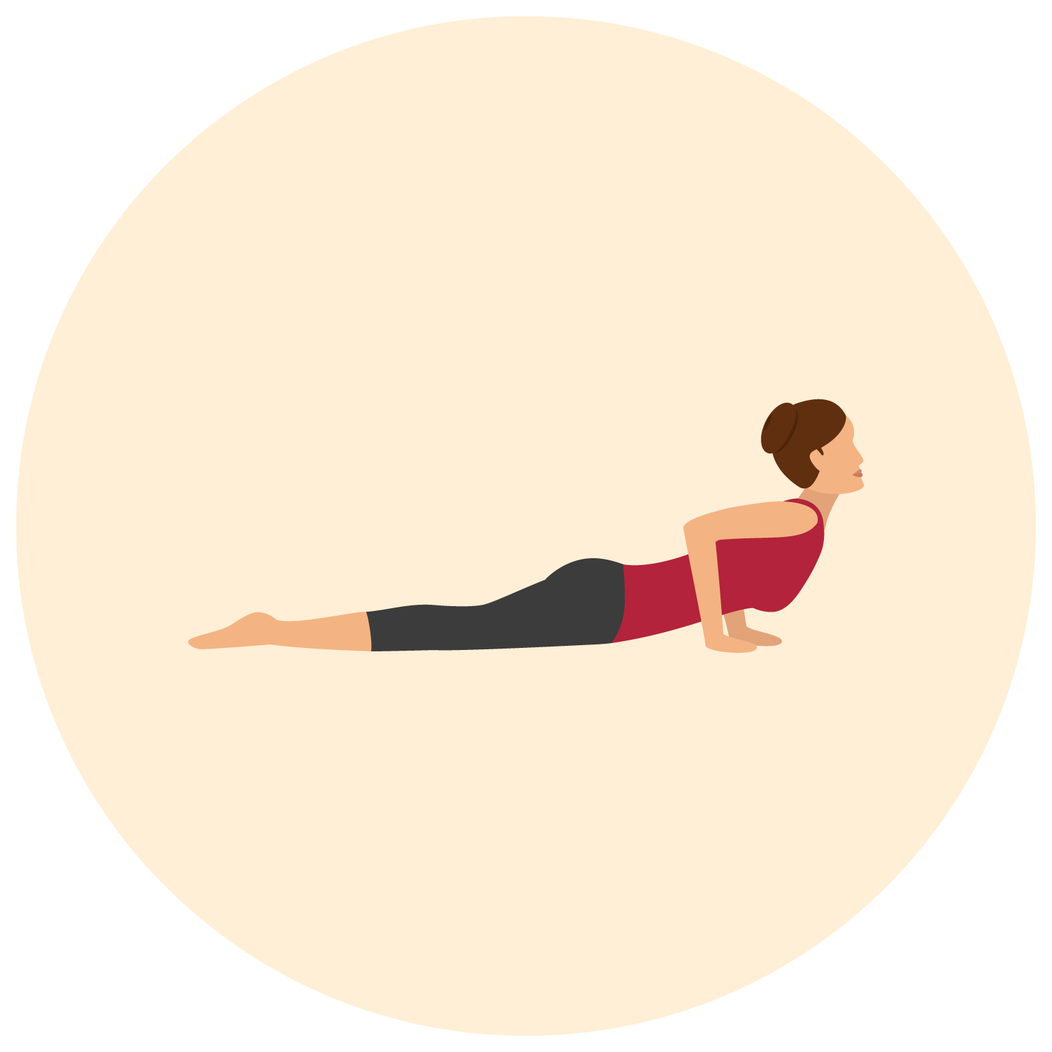 Cobra Pose opens the heart zone, which is very good for stress reduction and anxiety relief. Roll your shoulders up and back, as you push your chest forward to fully open the rib cage in the hold. It strengthens the spine, chest, lungs, shoulders, and abdomen.