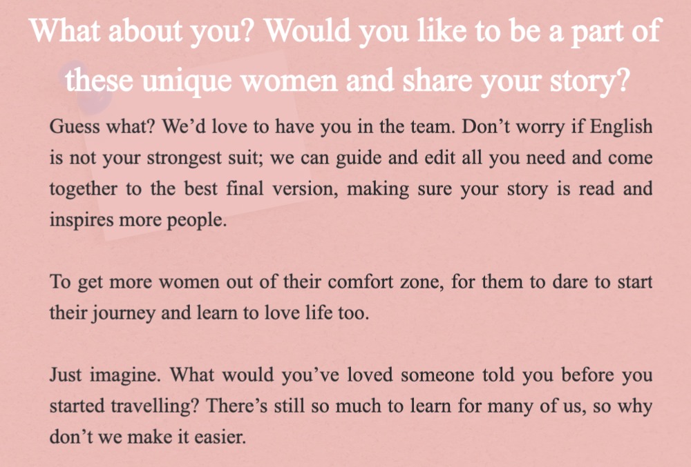 In this travelling lifestyle, there are so many women living these fascinating experiences all over the world. Growing so much and becoming a better version of themselves. A new woman who’s prouder and more confident.