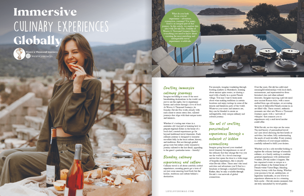 What do you look for in a travel experience—adventure, connection, romance? For many, food is an integral part of that journey. In this article, we explore this idea with Devaki Das, founder of Weave A Thousand Journeys Here’s everything you need to know about curating the most enriching and unforgettable travel experiences worldwide.