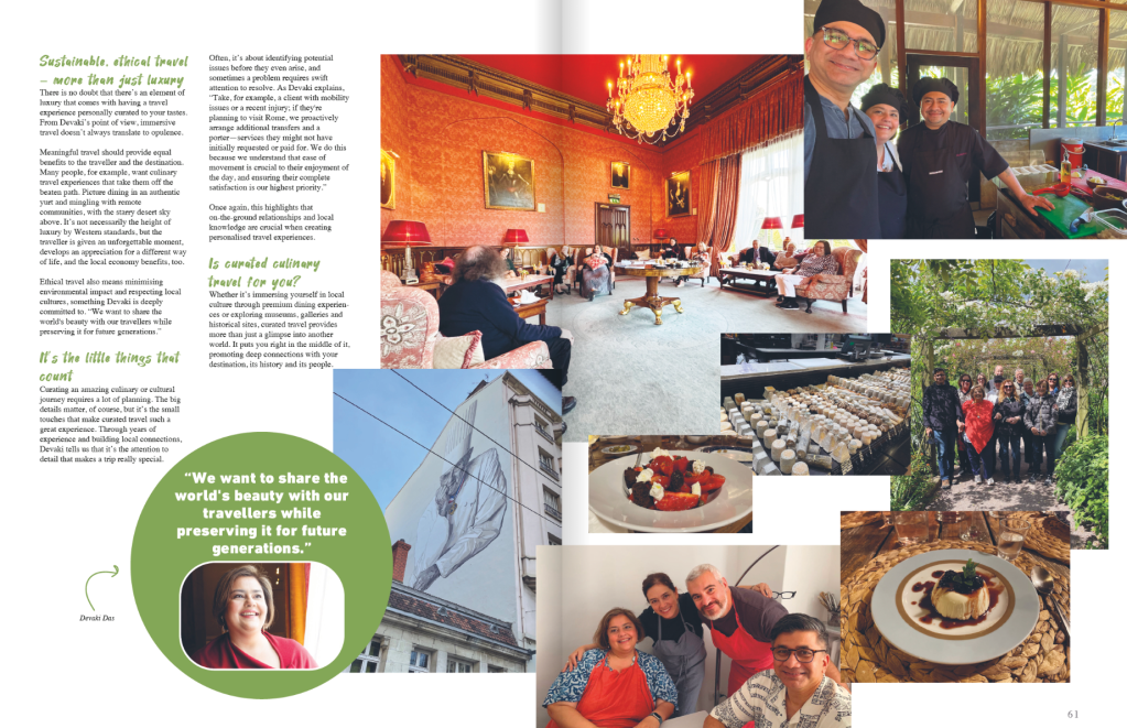 Ethical travel also means minimising environmental impact and respecting local cultures, something Devaki is deeply committed to. “We want to share the world’s beauty with our travellers while preserving it for future generations.”